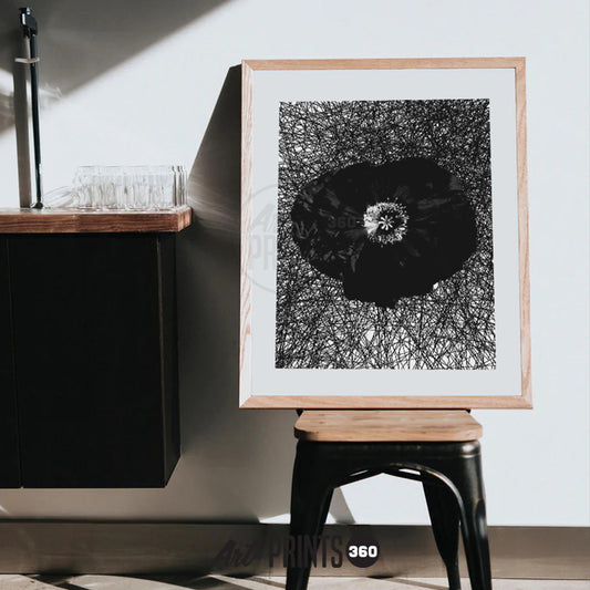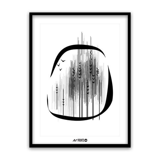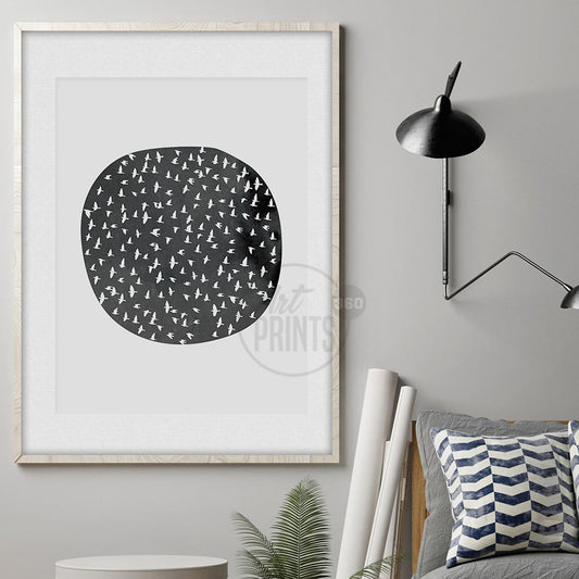 Flock of Birds in a Circle - Black and White Minimalistic Art, Abstract Design. Unframed