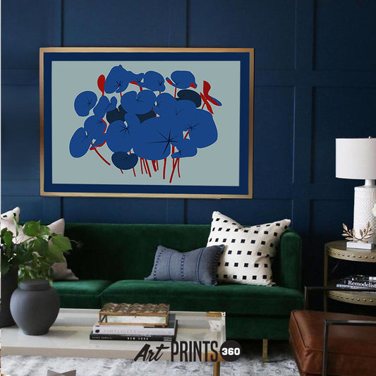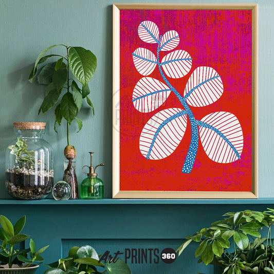 Inseparable Beauty in Red and Blue: Abstract Botanical Art Print with Red & Blue Leaves – Colorful Nature Wall Decor for Vibrant Spaces
