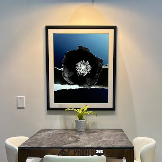 Abstract Black Velvet Garden: Black Flower Art on Blue Background – Modern, Elegant Design for Home Decor