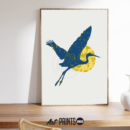 Blue Heron Wall Art: Flying Bird Abstract Minimalist Art – Modern Decor for Nature Lovers