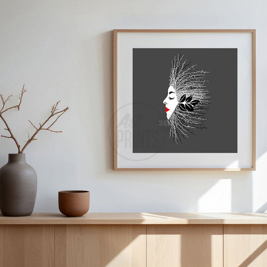 Delicate Beauty: Striking Black and White Abstract Art of Woman's Face with Hair Like Roots – Elegant Minimalist Wall Art