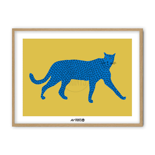 Blue Cheetah Wall Art Decor: Trendy Aesthetic Print for Vibrant Space – Minimalist Mid-Century, Modern look, Leopard Art Statement Piece