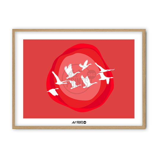 Flock of Swans Flying Across Vibrant Sunset Colors – Abstract Art for a Bold Touch of Nature in Home Decor