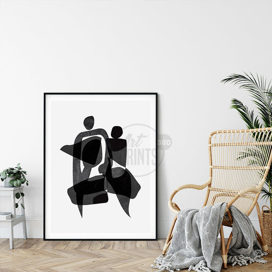 Couple Dancing, Abstract Black and White Abstract Art, Mid-Century Modern, Minimalistic Design, Home Decor Art, Unframed